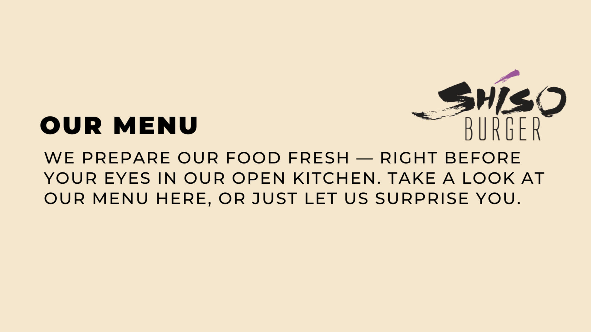 At Shiso Burger, we take pride in being the pioneers of a revolutionary concept, being the first branch in the Middle East and the largest branch worldwide. Our trademark is simple yet convincing: we bring together the best of conventional burgers with the wholesome ingredients of traditional Asian cuisine renowned for its health benefits.Prepare to embark on a culinary adventure that will redefine your perception of burgers forever! Our food is both uncomplicated and delicately prepared, ensuring a taste experience that is second to none.While meat eaters have always found their satisfaction at Shiso Burger, we cater to a diverse range of preferences. Our menu offers delightful options such as salmon, shrimp, or tuna burgers served with the eponymous shiso leaves—a wonder weapon for boosting your immune system. Vegetarians, on the other hand, can indulge in our veggie burger with pickled tofu and grilled eggplant, or savor the toad burger featuring portobello mushrooms.Accompanying our burgers are homemade fries, vitamin-rich kimchi, and edamame beans, all meticulously selected to complement the main course.